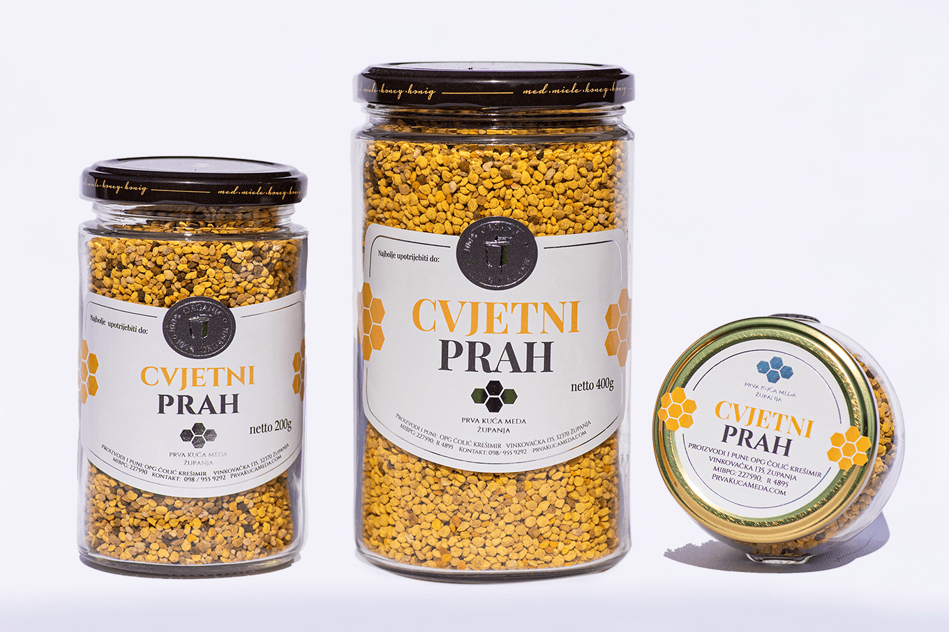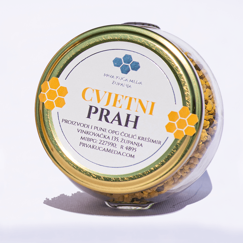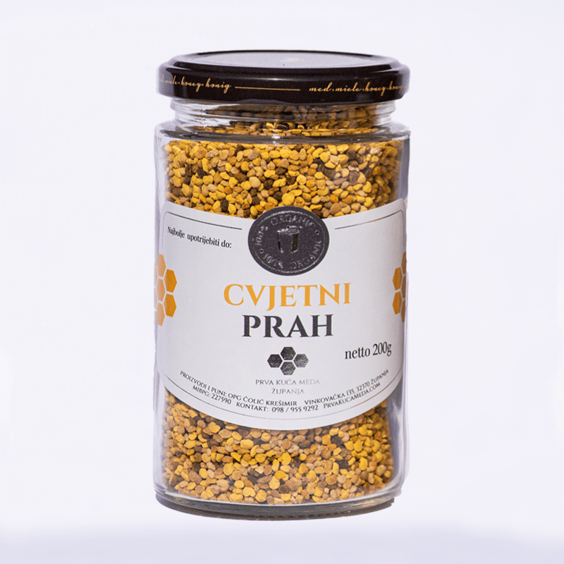 Cvjetni prah, poznat i kao pčelinji polen, jedno je od najbogatijih izvora hranjivih tvari iz prirode. Pčele ga prikupljaju iz raznih cvjetova, a svako zrno peludi sadrži bjelančevine, vitamine, minerale, i esencijalne aminokiseline potrebne za rast, razvoj, i regeneraciju organizma. Cvjetni prah je idealan dodatak svakodnevnoj prehrani, jačajući imunitet i pružajući energiju.