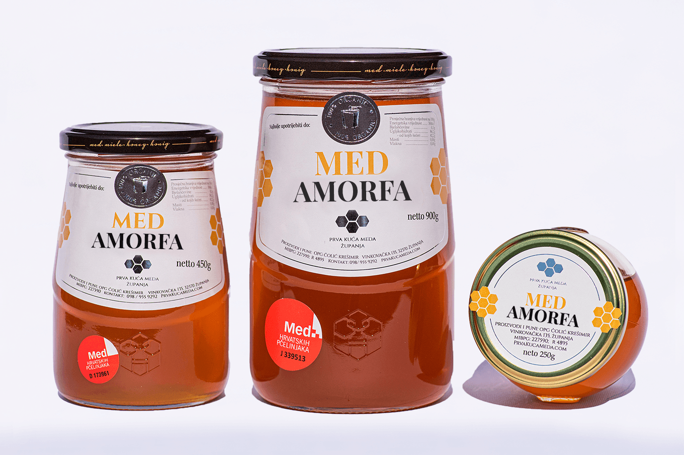 Med od amorfe tj. bagremca specifične je crvenkaste boje, blagog mirisa i okusa. Zbog specifičnog sastava cijenjen je u prehrani. Cvjeta početkom lipnja, a rijetko kada dobro zamedi, stoga ga se može naći u iznimno malim količinama. Preporuča se kod iscrpljenosti organizma i za podizanje energije na kraju napornog dana. Njegova crvenkasta boja upućuje na bogatstvo mineralnih sastojaka, koji donose novu snagu u iscrpljeni ljudski organizam. Dobar je izvor proteina, vitamina i minerala.
