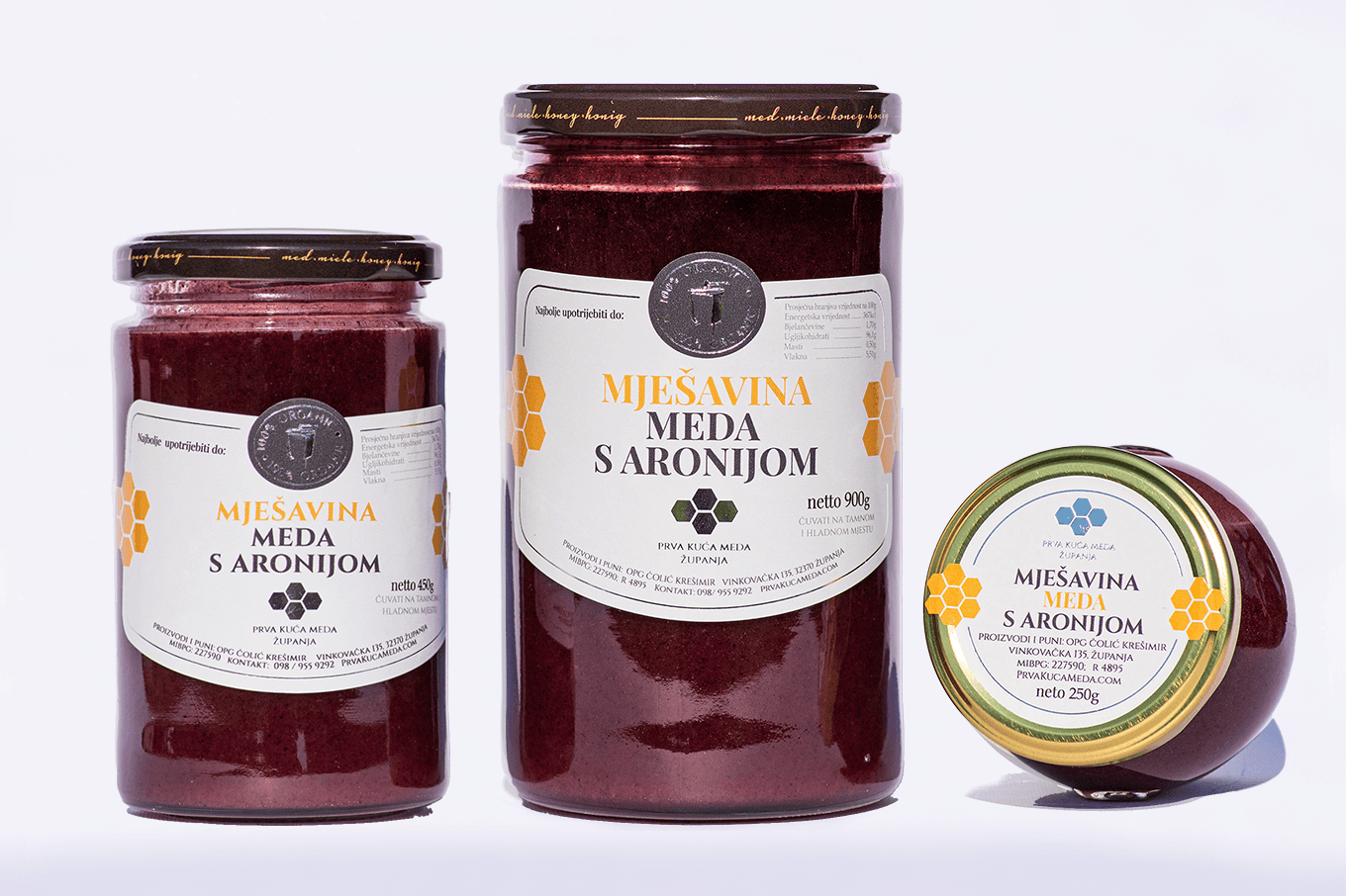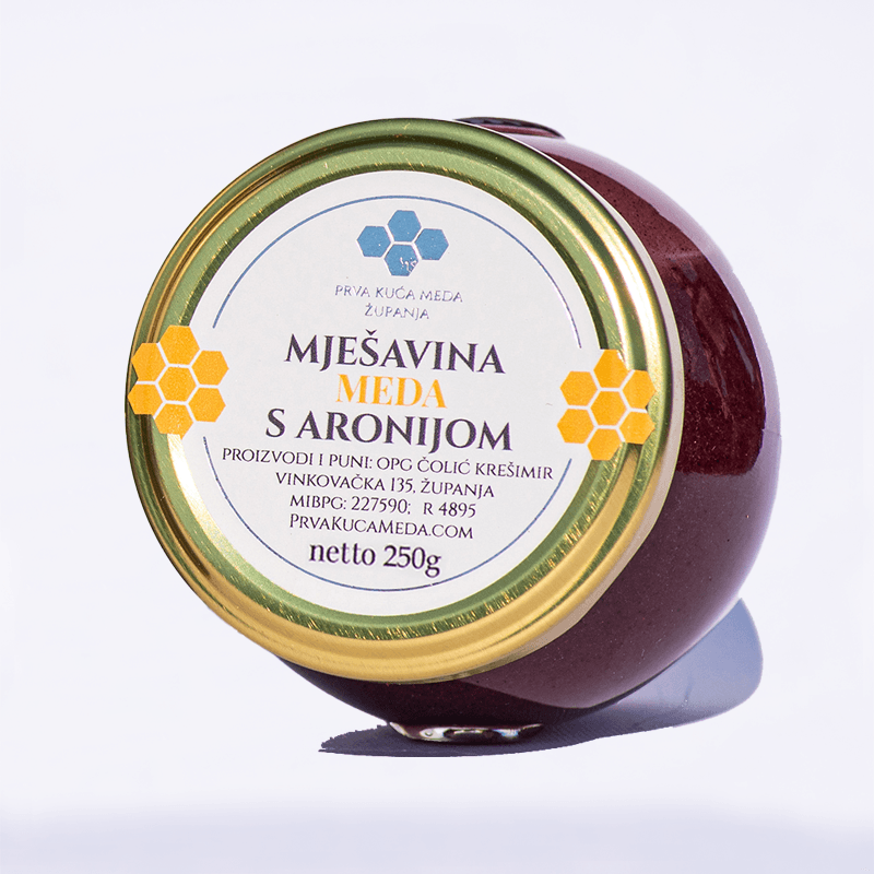 Naš med s aronijom izrađen je od pažljivo odabranih prirodnih sastojaka, bez dodatnih šećera i konzervansa. Ponosimo se vrhunskom kvalitetom naših proizvoda, osiguravajući da svaki zalogaj bude prepun zdravlja i okusa. Ovaj proizvod je savršen dodatak vašoj svakodnevnoj prehrani, pružajući vam sve prednosti prirodne slatkoće i snage antioksidansa.