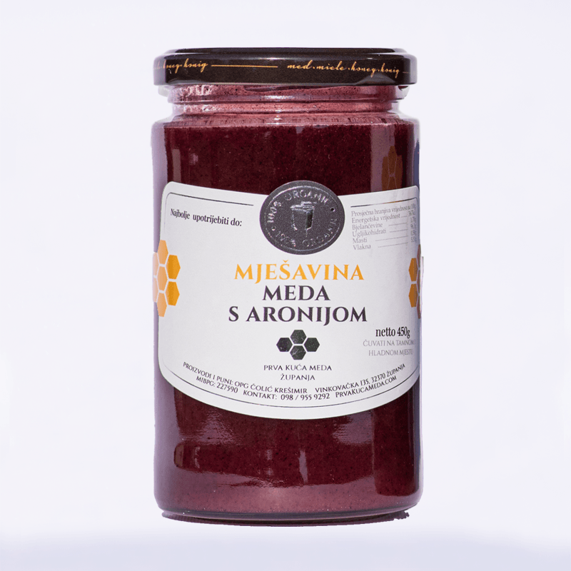 Med s aronijom prirodan je izvor energije, što ga čini izvrsnom alternativom za one koji žele zdraviju zamjenu za rafinirane šećere. Zahvaljujući svojoj bogatoj nutritivnoj vrijednosti, ova mješavina doprinosi vašem zdravlju na više razina, podržavajući imunitet i opće stanje organizma.